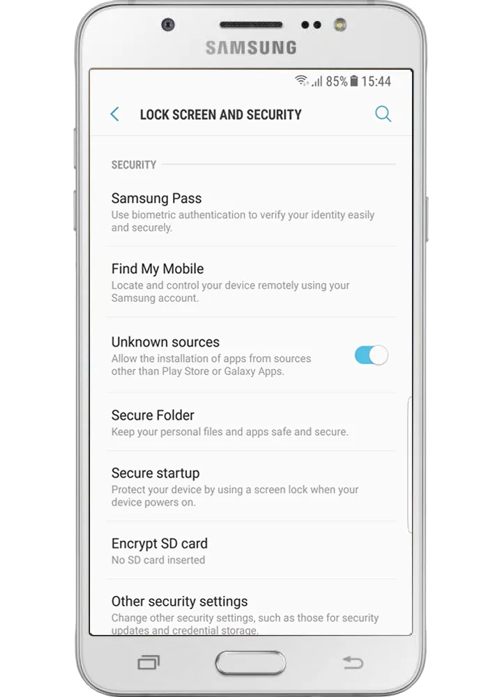 - Now, open ‘Settings > Security/Privacy > Installing Apps from Unknown Sources’ and enable the option on your device.